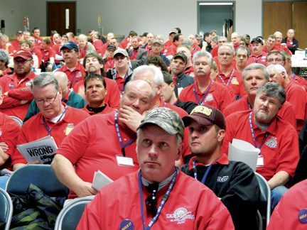 ![]() Fifth District Int. Vice Pres. Joe S. Davis (left) with Local 824 members Bobby Bellott and Aaron Myslinski. |