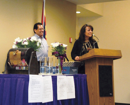 ![]() Longtime union Sister Elvida Acosta accepts Mother Jones Award at dinner ceremony in March. |