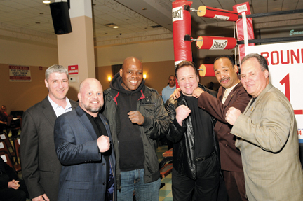 ![]() Local 164 hosts Golden Gloves charity event. From left: Local 164 boxing committee members Paul Dunleavy and Keith Misciagna; world champions Iran Barkley, Bobby Czyz, Mark Medal; and Local 164 boxing committee member John DeBouter. |