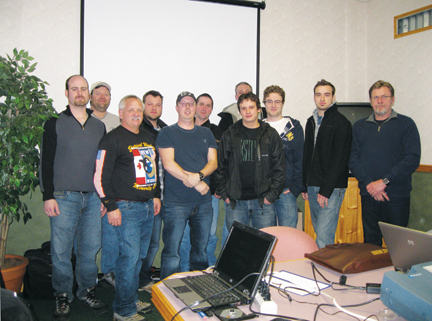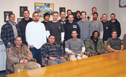 ![]() Int. Reps. Thomas M. Reid (right) and Jim Watson (third from left) with Local 956 training session attendees. From left: Dan Massicotte, Jason Behm, Watson, Landon Duplessis, Allan Weeks, Paul Caputo, Jason McGaughey, Adam Twigg, Devin Ross, Ryan Piche and Reid. |
