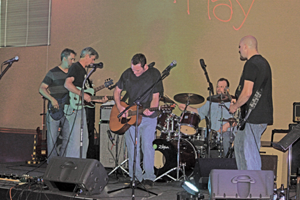 ![]() Musicians perform at the Local 364 "Plug and Play" concert. From left: Local 364 members Dan Resenbeck and Rob Bradley, Carpenters Bus. Agent Brad Long, Local 364 members Mike Stock and Ira Haugen. Not pictured: Local 364 musicians Jeff Lemmons, Matt Like, Patrick Barrett, Tom Gowan and Ron Anderson Jr. |