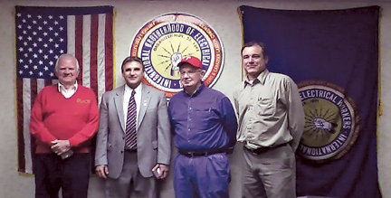 ![]() From left: IBEW Int. Sec.-Treas. Salvatore J. Chilia, Dir. of Professional & Industrial Organizing Gina Cooper, Fourth District Int. Vice Pres. Kenneth Cooper, Local 24 Bus. Mgr. Roger Lash and Int. Pres. Edwin D. Hill. |