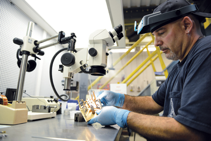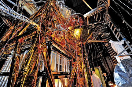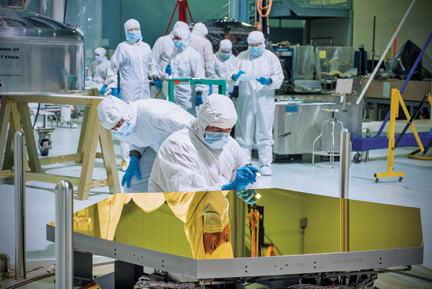 NASA is betting nearly $8 billion on the skill and competence of nearly 250 members of Baltimore Local 1501, the engineers and technicians working on the James Webb Space Telescope at the Goddard Space Flight Center. The Webb telescope is one of NASA's largest, most expensive missions ever, the successor to the path-breaking Hubble Telescope. Components for the telescope have been under construction in 27 states and 14 countries for nearly a decade, but in recent months, many of those components have come to Goddard, and assembly for the October 2018 launch has begun. Using an array of infrared sensors and a mirror nearly six times larger than Hubble's, the Webb telescope is designed to find and study the oldest, farthest, faintest objects in the universe to answer some of the most basic questions about how stars ignited, galaxies formed and planets coalesced out of the echo of the Big Bang. "Its purpose is to address the deepest questions we have: Where did we come from? Are we alone?" said Amber Straughn, deputy project scientist at Goddard. But for the telescope's four sensors to see into the early life of the universe, they will need to be cooled to only a few degrees above absolute zero, which is only possible far away from the heat emitted by the sun, the Earth or even the moon. Hubble orbits 375 miles up; the Webb telescope will be sent more than 1 million miles away, four times farther than the moon. So far that if anything goes wrong, if something on the telescope breaks, doesn't line up or unfold correctly, if none of the systems on board can fix it, no rescue or repair mission will be possible. "We only have one chance to get it right," said Delaney Burkhart, mechanical integration specialist, steward and member of Local 1501's executive board. "Our job is to test, and retest and test again until we are confident that one is all we need." Between Success and Mission Failure The IBEW members at Goddard all work in the environmental test and integration facility, the largest building on the wooded campus just outside of Washington, D.C. Most of the buildings look they were dropped in from a run-of-the-mill '60s office park. But from the massive storage tanks to the circular annex with a domed roof, it is very clear that this building is different. Most impressive, rising from the green trees and red brick buildings, is the stark white shell of the facility's heart: the world's largest clean room. This is Local 1501 member Colette Lepage's world, the space systems development and integration facility, a 12,500 square-foot, nine-story clean room kept 1,000 times cleaner than a hospital operating room. Satellites have to be extremely resilient, strong and flexible at the same time, yet very small things can wreak havoc when satellites are sent where no one can follow. Dust in electronics can cause shorts and atmospheric hydrocarbons and silicone gels found in many kinds of makeup can cause disastrous condensation to form on the mirrors and lenses. "A smudge on a camera lens is annoying, but dust or condensation on a space telescope can mean mission failure," Lepage said. Lepage helps design and implement the contamination protocols that are followed by every person in the building throughout testing and integration. "Every action that involves moving the flight equipment is meticulously planned out and vetted before anything happens," Burkhart says. "We will build specialized tools and support equipment that will only be used once because everything must be in precisely the right place and there are few — if any — replacements for components that will go into space." And nothing is routine when every part is both irreplaceable and, especially for Webb, unlike anything done before. The New Hubble A telescope the size of a school bus, orbiting 375 miles above the earth, Hubble was one of the most extraordinary scientific instruments ever created. But Hubble was in many ways familiar. It shared the simple, tubular design of reflecting telescopes used by everyone from Isaac Newton to amateur astronomers today. The Webb telescope looks like nothing that has ever been built. Instead of a round mirror inside a tube, the James Webb telescope looks like a golden satellite dish flown atop a five-layer kite. The golden dish is the more than 21-foot diameter mirror and the kite is the tennis-court sized sunshield that will protect the instruments from the heat and light of the sun, Earth and moon. Both the mirror and the sunshield are far larger than any existing rocket could carry. So instead of a single-piece mirror like Hubble and most ground-based optical telescopes, Webb's mirror is made of 18 gold-plated beryllium hexagonal sections, six of which will tuck away like a bird's wings. The sunshield will be furled like a sail until after separation from the launch capsule, when the telescope will unfold like a butterfly emerging from its cocoon. Paula Cain and her colleagues in the "blanket shop" handcraft the multilayered thermal insulation that will protect the parts of the telescope that must stay (relatively) warm from the extremes of space and they will isolate the equipment that must stay extremely cold, safe from the heat of the telescope itself. Like many Local 1501 members, Cain did not originally think about a career in the space program. Her college degree is in fashion design. "It is not what I pictured, but really there's a lot of overlap," she said. With material that can cost north of $900 a yard, precise and judicious cutting and sewing, all done by hand, is paramount. "I just tell people I make garments for satellites instead of people," Cain said. Seeing the Light from the Cold and Dark Building a mirror so large it must fold up to fit in the launch capsule introduces enormous additional risks and costs, but mission scientists say the calculus was simple: bigger is always better for telescopes. All that extra real estate will allow the scientists to resolve images hundr